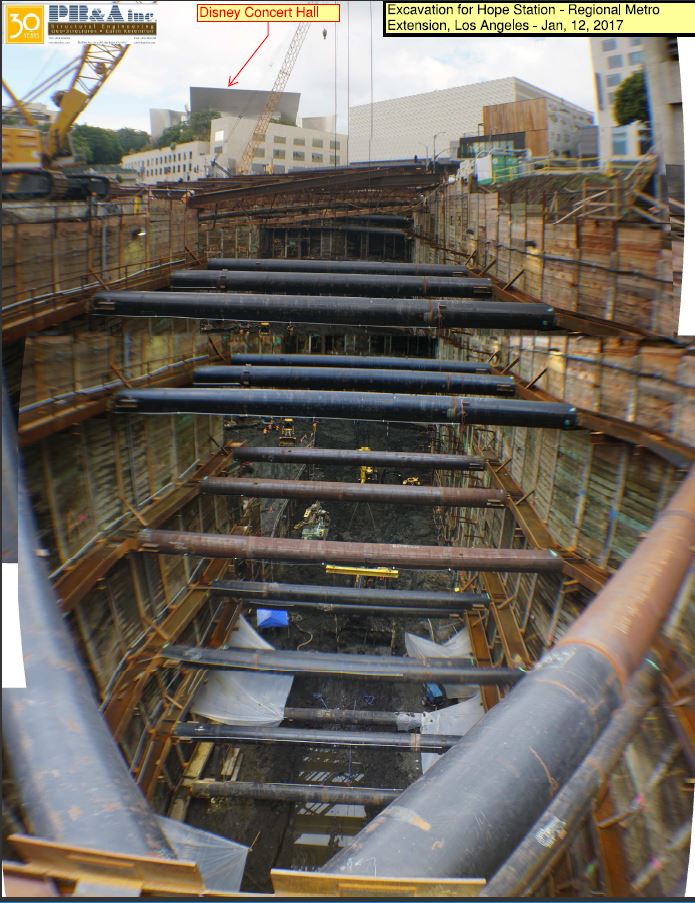PB&A was retained by RCCJV (Skanska-Traylor) to provide the design for the Shoring of Excavation (SOE) for two of the stations at the LA Metro Regional Connector Project, 2nd and Hope Street and 2nd and Broadway. The Hope Station, when finished, will serve as one of the stations along a subterranean rail tunnel connecting the Blue, Gold and Expo lines. Having provided the Shoring Design for the Blue Line that went through downtown Pasadena, and the Boyle Station on the Gold Line, PB&A’s prior experience with both the Metro officials and the LABOE served our client well on this newest Metro Project.